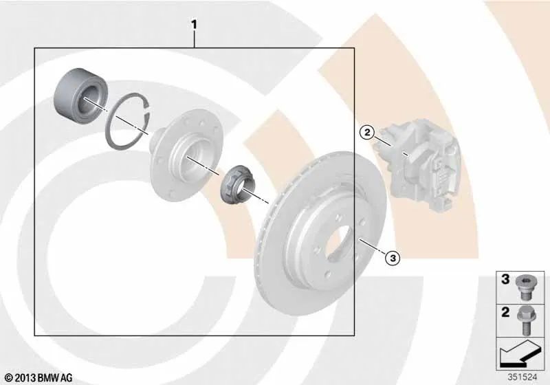 Kit di riparazione dei cuscinetti della ruota posteriore per BMW E81, E82, E87, E87N, E88, E90, E90N, E91N, E92, E92N, E93, E93N (OEM 33412450406). BMW originale
