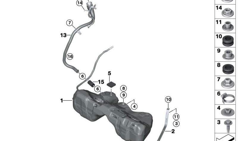 OEM 16115A3B061 PAM PAD per BMW 2 G42 (218i, 220d, 220i, 230i, 230i xDrive). Piece BMW originale, situato nel sistema del serbatoio del carburante. Misure: 45x45x12 mm.