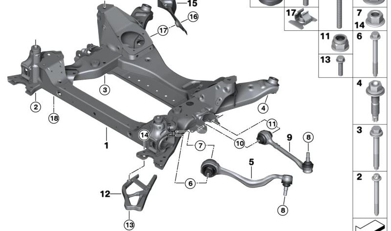 Questo componente fa parte del sistema di sospensione anteriore, in particolare il supporto dell'asse anteriore, sostituendo il numero precedente numero 31106870990.