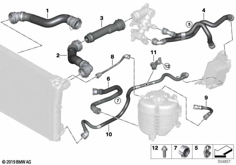Tubo di raffreddamento refrigerante per BMW G20, G20N, G21, G21N Serie 4 G22, G22N, G23, G23N, G26, G26N (OEM 17128472022). BMW originale.