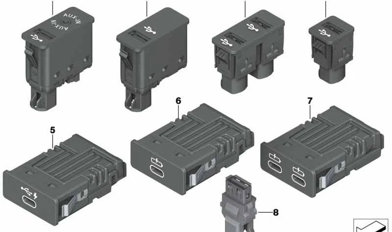USB connector OEM 84106820397 For BMW {F20, F21, F22, F23, F30, F31, F34, F35, F45, F46, F48, F49, F39, I01, I12, I15} and Mini {F54, F55, F56, F57, F57, F60}. BMW originale e Mini.