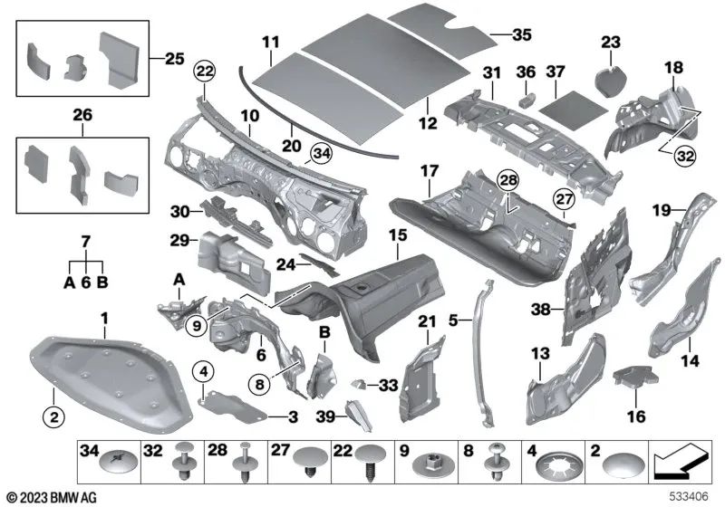 Insonorización salpicadero OEM 51487431664 para BMW F20, F21, F22, F23, F30, F31, F34, F36... y más. Original BMW.