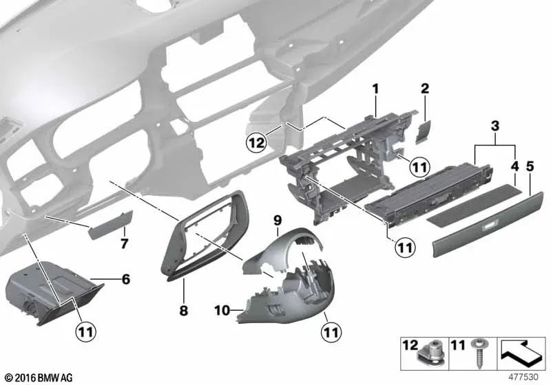 Alfombrilla para compartimento de almacenamiento I-Tablero superior para BMW F07, F07N (OEM 51459142619). Original BMW.