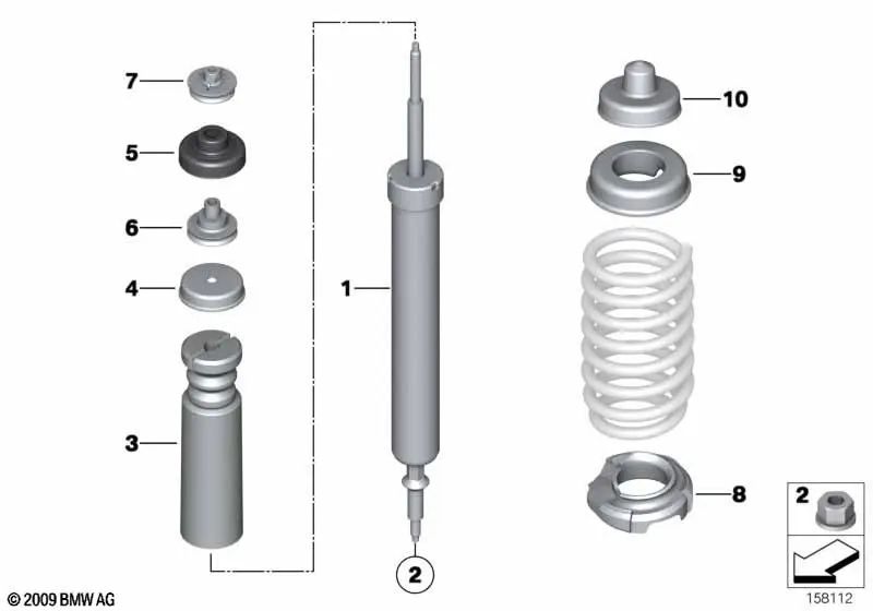 El amortiguador trasero original BMW es ideal para mantener la estabilidad y el confort de tu vehículo. Diseñado específicamente para los modelos mencionados, garantiza un rendimiento óptimo y una conducción suave. Apuesta por la calidad y la seguridad que solo los productos originales BMW pueden ofrecer.