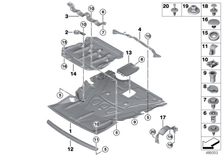 Apantallado compartimento motor tracción total OEM 51757241818 para BMW F20, F21, F22, F23, F30, F31, F32, F33, F34, F36… y más. Original BMW.