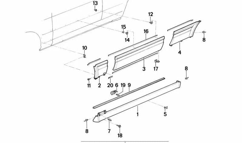 Esta pieza es esencial para asegurar un montaje firme y seguro del kit de carrocería M TECHNIC, proporcionando un acabado de fábrica en tu BMW clásico. Asegúrate de tener la referencia correcta para tu modelo antes de solicitar la pieza.