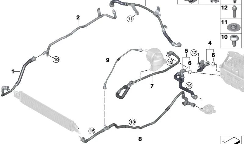 Clip de sujeción de conductos OEM 17128476121 para BMW G20, G20N, G21, G21N, G22, G22N, G23, G23N, G26, G26N, G42. Original BMW.