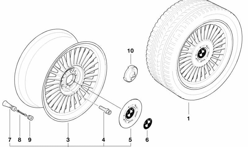 Cubre buje para BMW E38 (OEM 36131182203). Original BMW