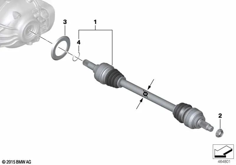 Árbol de salida izquierdo OEM 33208680347 para BMW F20, F21, F22, F30, F31, F34, F32, F33, F36... y más. Original BMW.