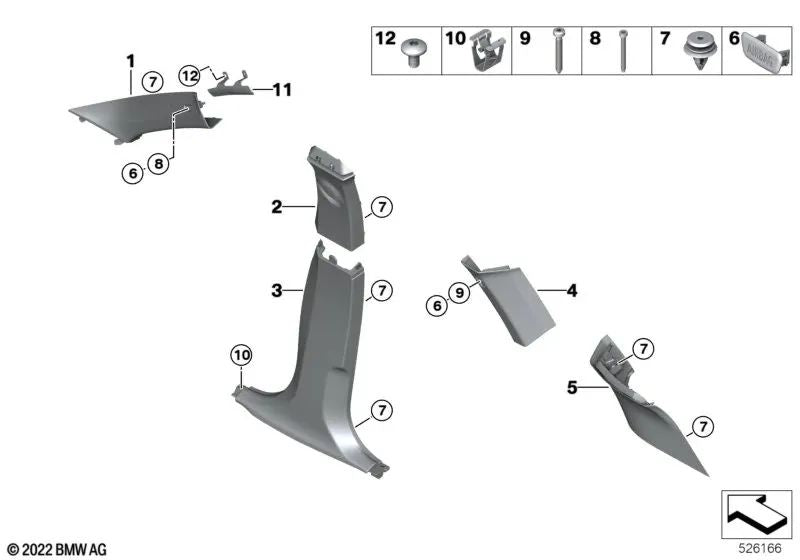 Embellecedor del Pilar C superior derecho para BMW U11, U12 (OEM 51439462326). Original BMW