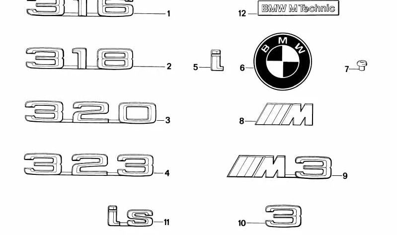 Emblema pegado para BMW Serie 3 E30 (OEM 51141916134). Original BMW