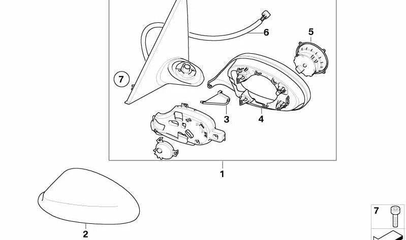 Espejo retrovisor derecho calefactable OEM 51167268306 para BMW Serie 1 E81 (modelos 116d, 116i, 118d, 118i). Original BMW.