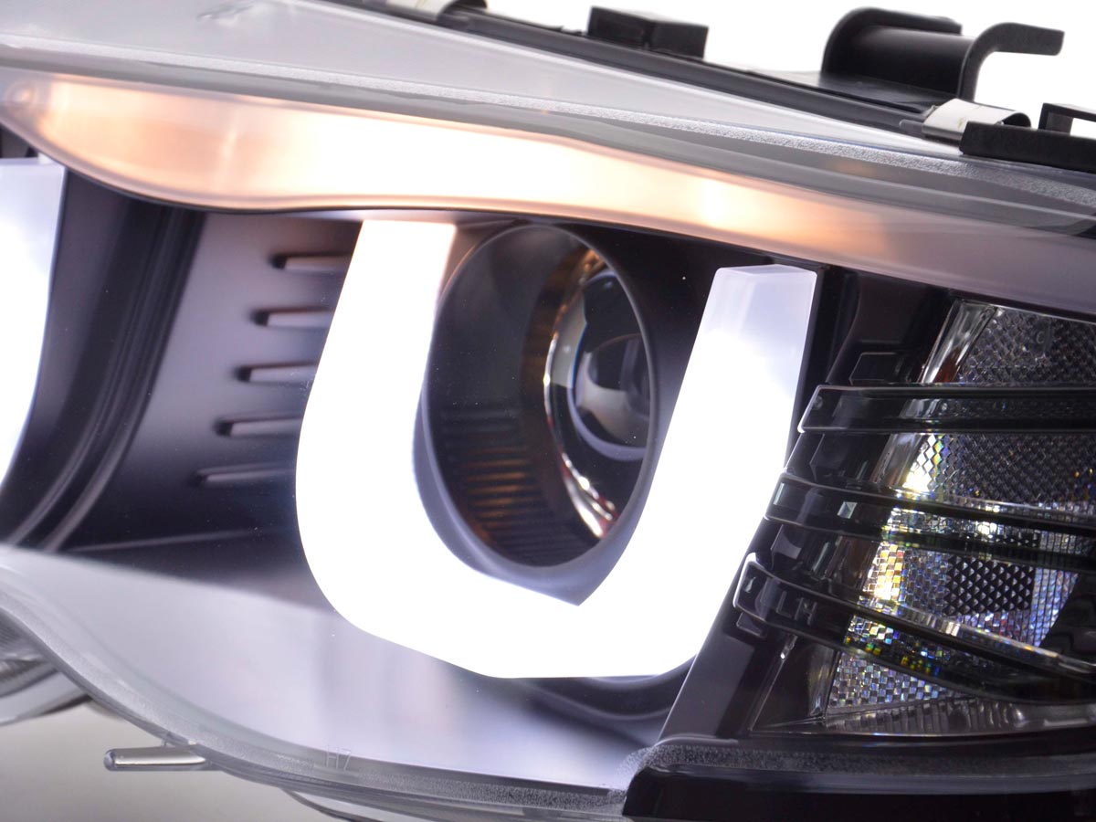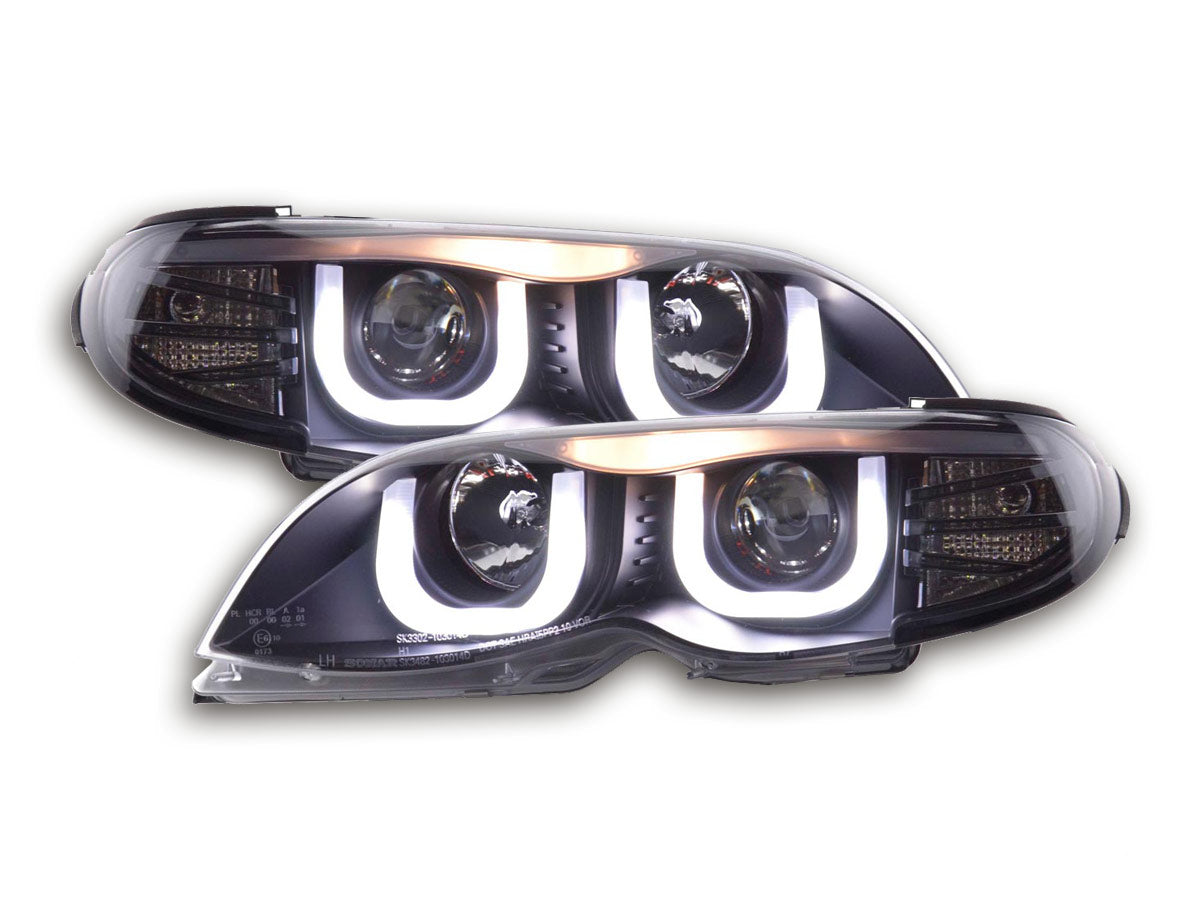 Faros delanteros LED con aspecto DRL para BMW Serie 3 E46 Berlina/Touring 02-05 en negro para volante a la derecha