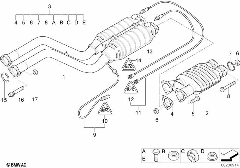 Juego de accesorios de silenciador para BMW E46, E70, E53 (OEM 18210151442). Original BMW.