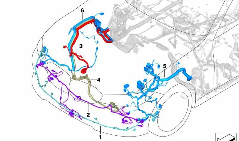 Juego de cables delantero izquierdo OEM 61129835619 para BMW G80 M3 (todos los modelos: M3, M3 Competition, M3 Competition xDrive). Original BMW.