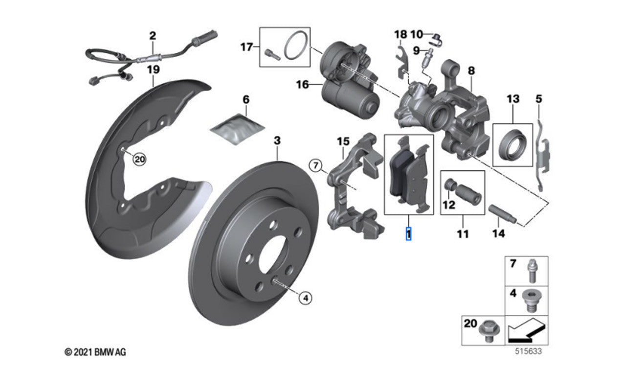 Juego de pastillas de freno traseras OEM 34201543683 para BMW F40, F44, X2 F39 y MINI F56, F55, F54, F57, F60… y más. Original BMW y MINI.
