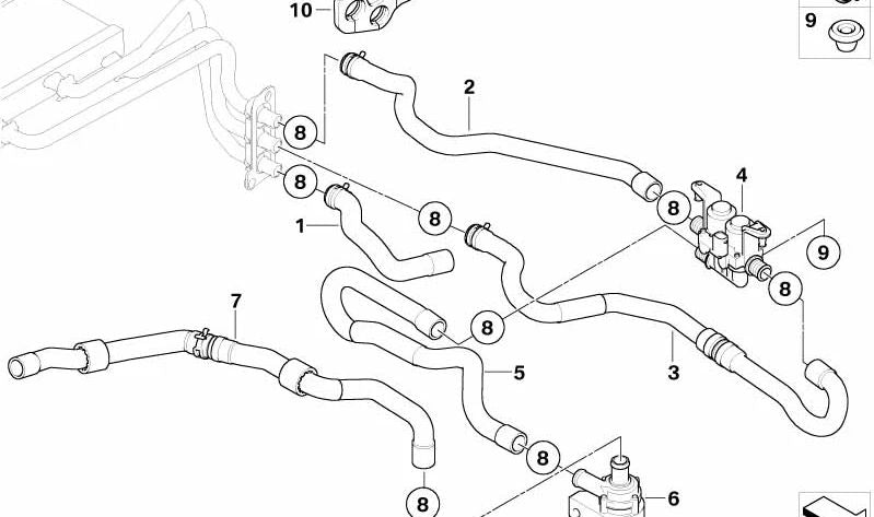 Descripción: Esta es una manguera de conexión esencial entre la bomba de agua auxiliar y la válvula de calefacción de tu BMW. Diseñada específicamente para modelos de las series 5 y 6, garantiza el correcto funcionamiento del sistema de calefacción asegurando un flujo adecuado de agua.