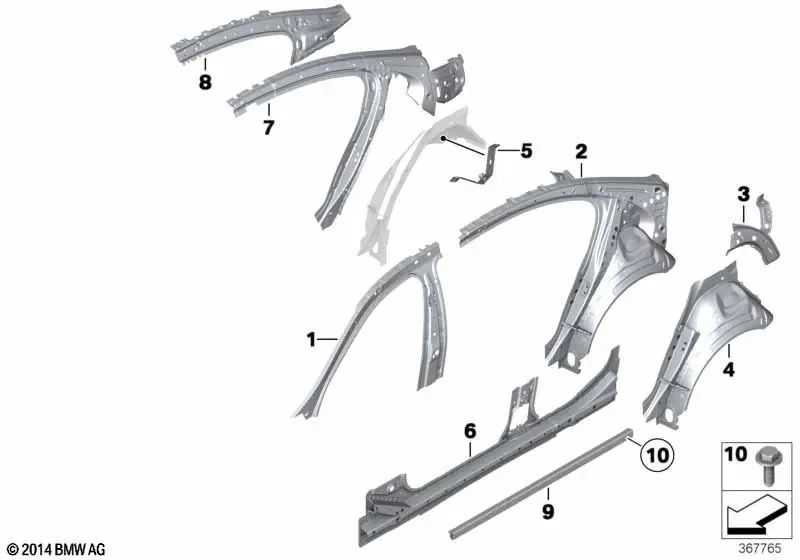 Marco lateral interior trasero derecho para BMW F10 (OEM 41217361404). Original BMW.