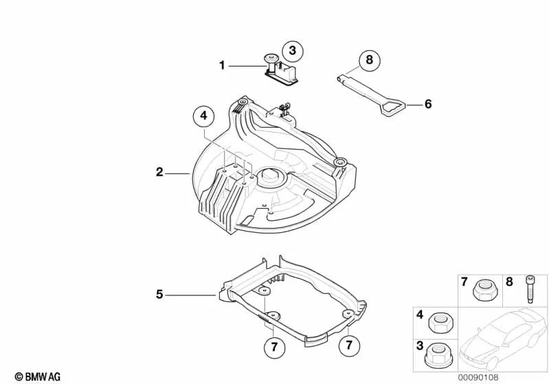 La instalación de este mecanismo es sencilla y está diseñada para integrarse perfectamente con los sistemas de sujeción de la rueda de emergencia de su vehículo BMW. Al elegir piezas originales, asegura la máxima compatibilidad y durabilidad.