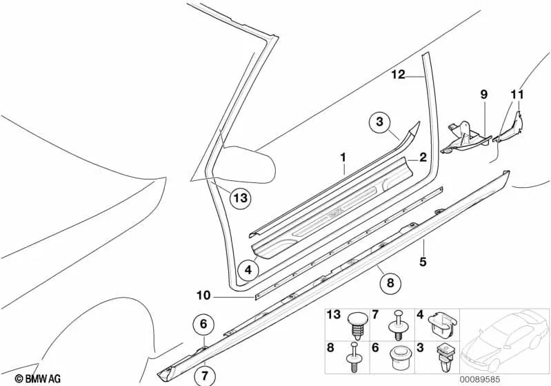 Moldura de entrada interior derecha para BMW Serie 3 E46 (OEM 51478239968). Original BMW.