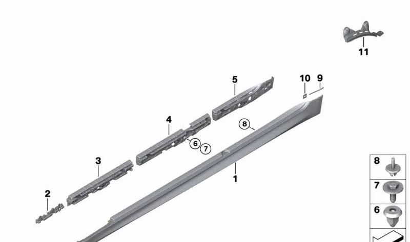 La moldura de paso de rueda trasera izquierda es una pieza original de BMW diseñada específicamente para los modelos Serie 5 G30 y G31. Es un componente esencial para mantener la estética y la aerodinámica de tu vehículo, asegurando una perfecta adaptación y un acabado impecable.