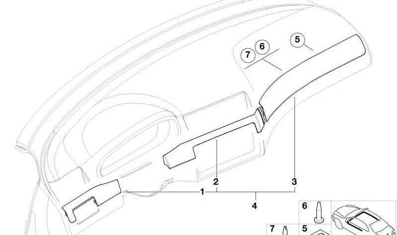 Ideal para sustituir molduras dañadas o desgastadas, restaurando la apariencia interior de tu vehículo a su estado original. Esta pieza asegura que tu BMW mantenga la calidad y estética que tanto te gustan.