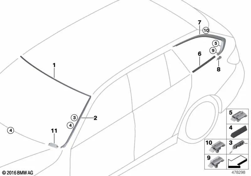 Moldura lateral del marco derecho para BMW Serie 3 F31, F31N (OEM 51357258344). Original BMW