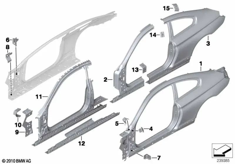Refuerzo del marco lateral izquierdo para BMW F13, F13N (OEM 41217264029). Original BMW