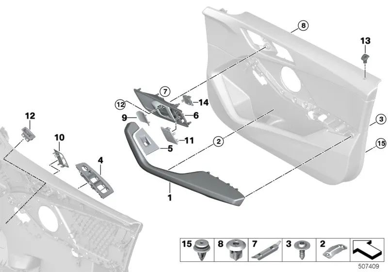 Reposabrazos delantero derecho OEM 51419875548 para BMW F40, F44 Gran Coupé. Original BMW.