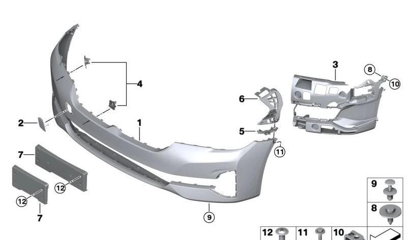 Revestimiento de Parachoques imprimado delantero para BMW G30N, G31N (OEM 51119852198). Original BMW