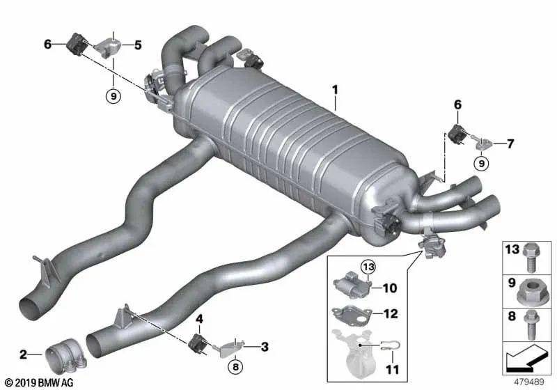 Silenciador adicional con chapaleta de escape OEM 18308654967 para BMW Serie 7 G12. Original BMW.