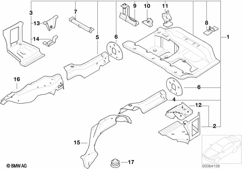 Soporte lateral izquierdo del piso del maletero para BMW Serie 3 E46 (OEM 41127038063). Original BMW