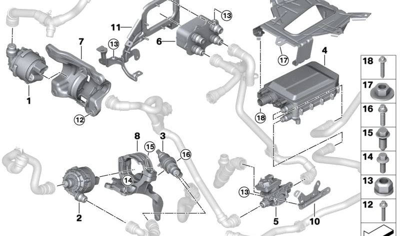 Soporte para bomba de agua eléctrica OEM 11515A03081 para BMW G60, G61, G70. Original BMW.