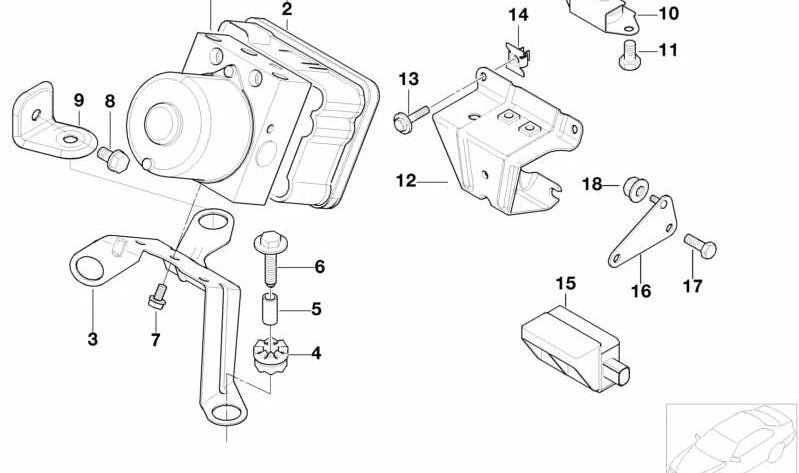 Este soporte es esencial para el correcto funcionamiento del sistema DSC en tu BMW, asegurando que los sensores se mantengan en su lugar para lograr el desempeño óptimo del sistema de estabilidad del vehículo.