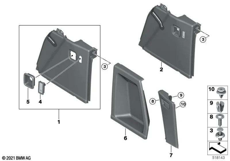 Tapa maletero derecha para BMW X3 F97, G01, G08 (OEM 51477445814). Original BMW.