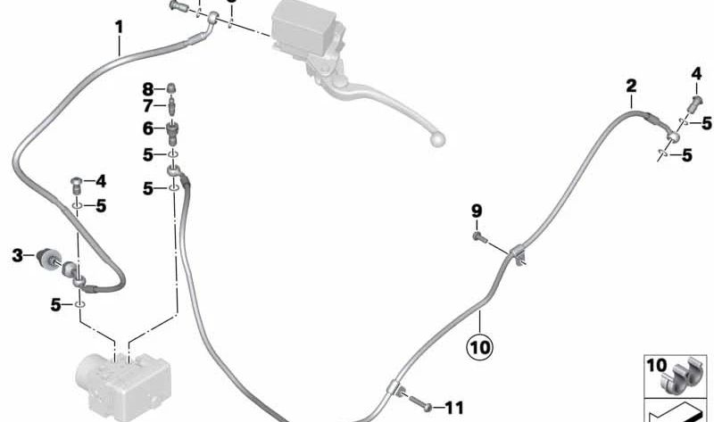 Tubería de freno trasera OEM 34328543634 para motos BMW C evolution (K17). Original BMW Motorrad.