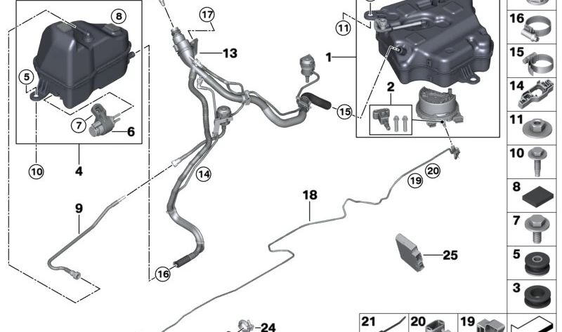 Tubería de Ventilación Depósito Pasivo para BMW G14, G15, G16 (OEM 16197476088). Original BMW