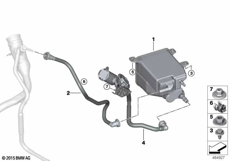 Tubo de ventilación con módulo de diagnóstico de fugas para BMW G11N, G12, G12N (OEM 16117476288). Original BMW