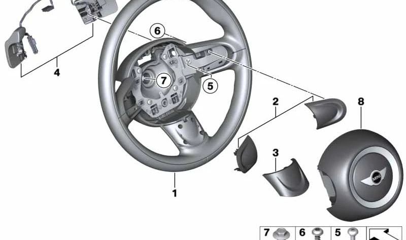 Volante deportivo de cuero con botones de transmisión OEM 32306791370 para MINI R56, R56 LCI... y más. Original MINI.