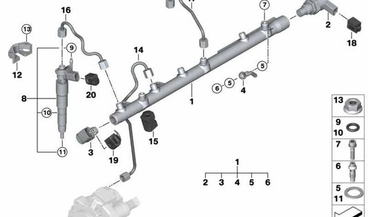 Injetor de combustível OEM 13537792721 para BMW Series 3 (E92, E93), 5 Series (E60, E61), Série 7 (E65, E66), X3 (E83) e X5 (E70). BMW original.