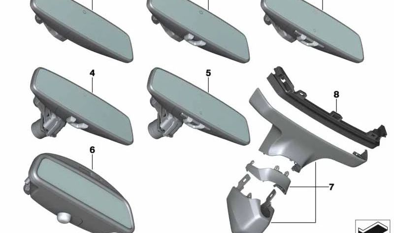 Conjunto de Basileia do espelho retrovisor OEM 51165A3DB89 para a série BMW 5 (F90N, G30N, G31N, G38N) e 6 SERIES (G32N). Compatível com traseiras interiores específicas. BMW original.
