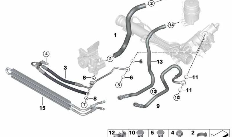 Tubo de expansão de direção ativa para BMW Série 1 E81, E82, E87, E87N, E88, Série 3 E90, E91, E92, E93 (OEM 32416784330). BMW original
