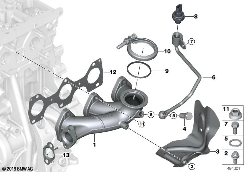 Placa de proteção térmica para BMW Série 2 F45, F46, F48, MINI F54, F55, F56, F57, F60 (OEM 11628571894). BMW original