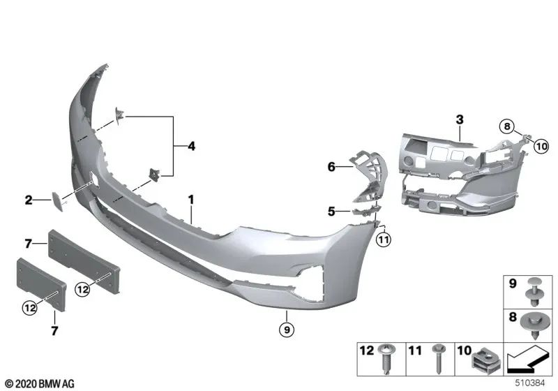 Suporte para a luz à direita para a série BMW 5 G30N, G31N (OEM 51119498602). BMW original.