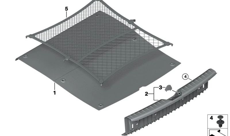 Compatível com os modelos BMW F20 e F21. Esta tampa embelezada é uma peça BMW original, projetada especificamente para ajustar a borda da carga dos transportadores no lado esquerdo.