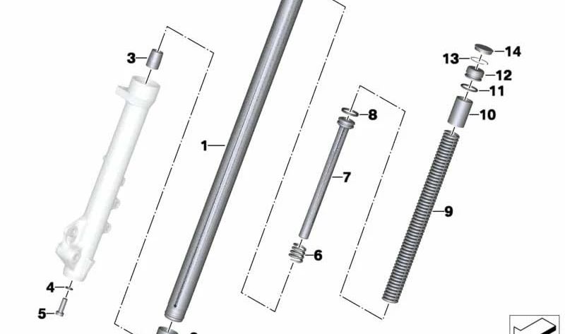 Tubo amortecedor dianteiro OEM 31428521285 para motocicletas BMW F 700 GS, G 650 GS. Originais BMW Motorrad.