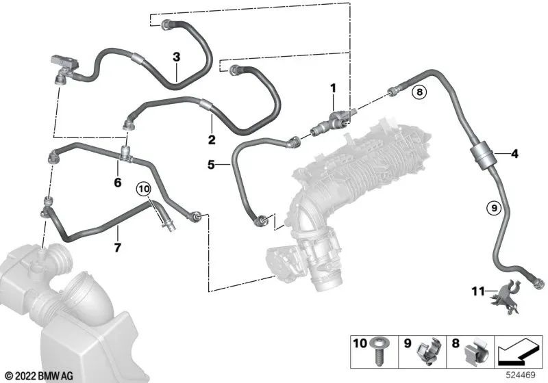 Tubo de respiro para BMW F20N, F21N, F22, F23, F30N, F31N, F35N, F32, F36 (OEM 11158608766). BMW originais.