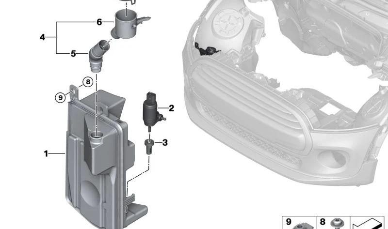 O tanque de pára -brisa dianteiro, referência do OEM: 61669854947, é uma mini peça original projetada especificamente para garantir uma limpeza perfeita do para -brisa em seus deslocamentos diários. Este produto é compatível com diferentes modelos das séries Mini F55, F56 e F57 (LCI), garantindo o ajuste preciso e o desempenho confiável.